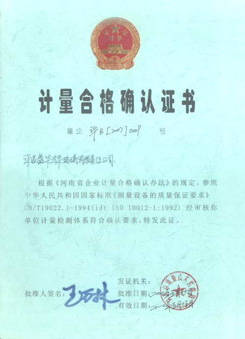 计量合格确认证书